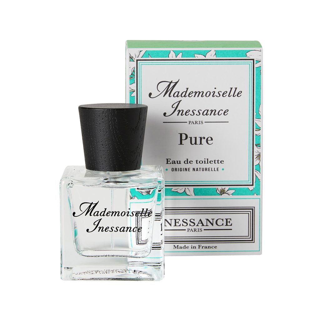 Mademoiselle Pure d’Inessance, une Eau de Toilette à 97% d’ingrédients d’origine naturelle avec de l’alcool d’origine végétale (betterave sucrière et blé) et du parfum à 80% d’origine naturelle. Un floral lumineux, avec ses accords de Bergamote, de Rose et de Muguet qui apaisent les sens. Une ode à la nature.