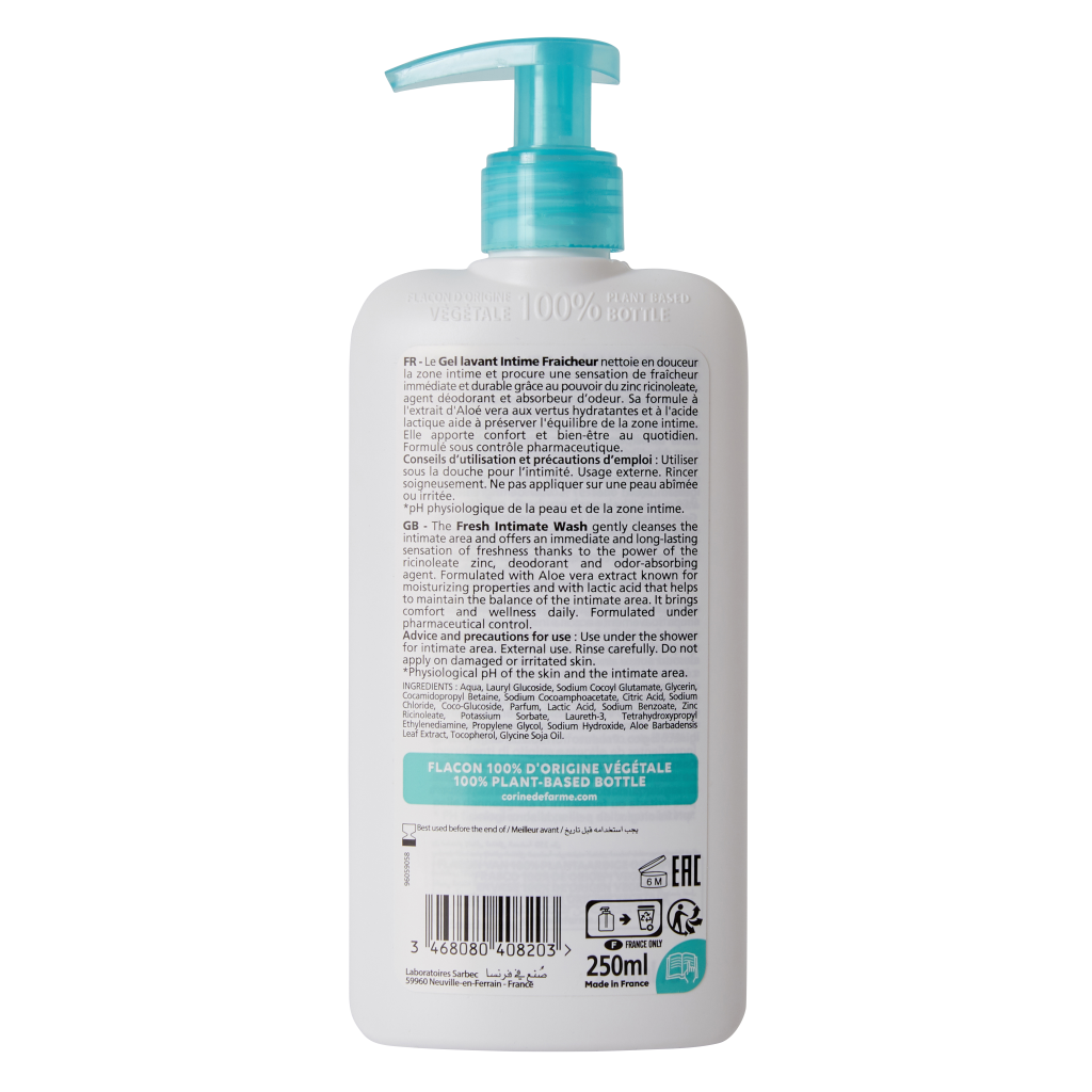 Ce gel intime Fresh, au parfum délicat, est idéal pour nettoyer en douceur l’intimité. Formulé avec du Zinc ricinoleate, agent déodorant et absorbeur d’odeur, il vous procure une sensation de fraîcheur longue durée et de bien-être au quotidien. Enrichi en Aloe vera et en Glycérine végétale aux vertus hydratantes, il respecte et ne dessèche pas la peau, même sensible. Sa base lavante au pH physiologique, enrichie en acide lactique qui aide à préserver l’équilibre de la zone intime, vous assure une hygiène parfaite tout en respectant sa sensibilité et sa fragilité.