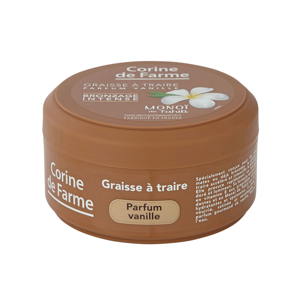 Spécialement conçue pour les peaux mates ou déjà bronzées, cette graisse à traire procure rapidement un bronzage doré et lumineux. Son parfum Vanille vous invite au voyage et à l’évasion.