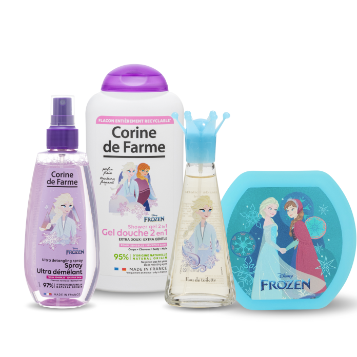 Spray démêlant La Reine des Neiges : Aqua, Propylene Glycol, Polyquaternium-22, Polyglyceryl-4 Caprate, Polyglyceryl-6 Caprylate, Sodium Benzoate, Potassium Sorbate, Cetrimonium Chloride, Parfum, Citric Acid, Sodium Hydroxide